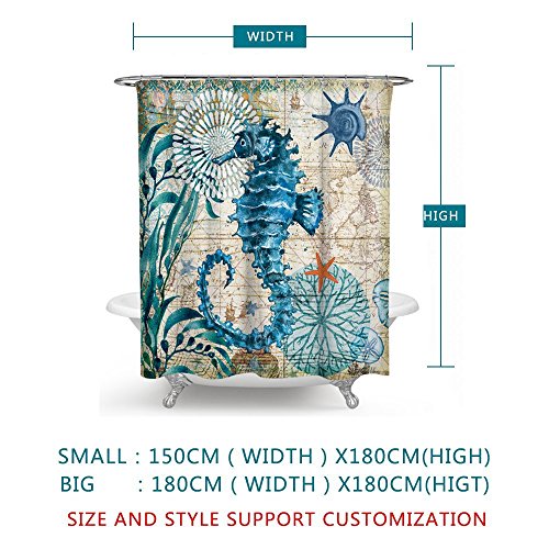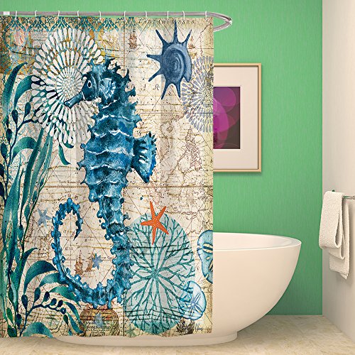 Ecomic Sea Horse Ocean Animal Shower Curtains Waterproof Polyester Blackout Draperies Window Solid Grommet with 12 Hooks for Bedroom Living Bathroom,71 x 71(10)