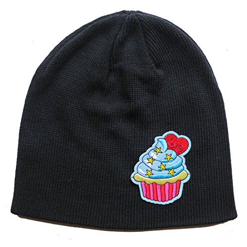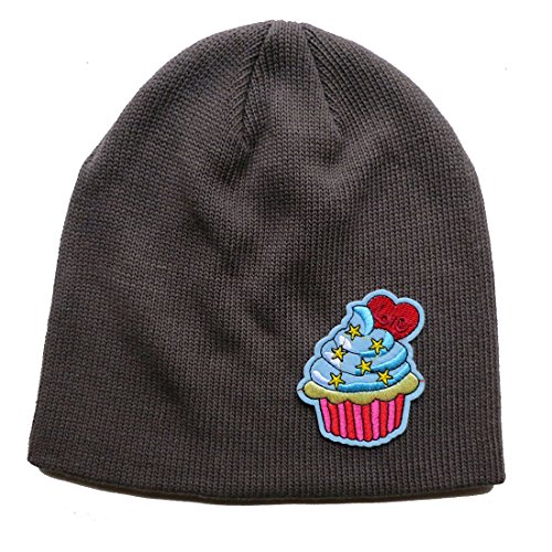 Product DescriptionWarm cotton beanie with a big colorful cupcake love applique patch. Black or charcoal gray.0