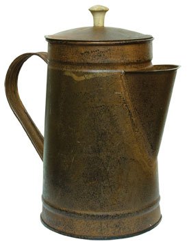 [Product Information]- This Rusty Coffee Pot is a classic kitchen accent! Rusty tin coffee pot with cylindrical sides and a strap metal handle, removable lid has wooden knob handle. Rustic finish has black distressing for a primitive touch. 8" H x 4-3/4" in diameter. For decor use only