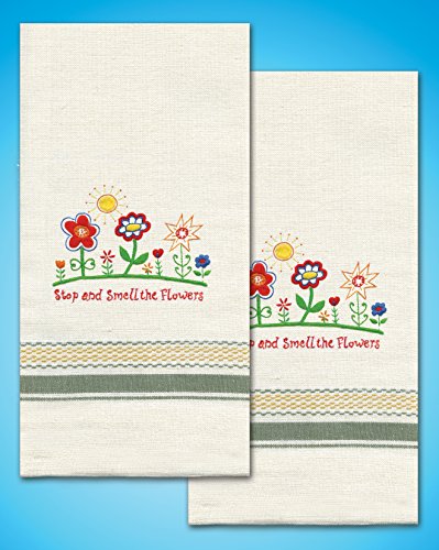 Tobin Smell the Flowers Stamped Kitchen Towels for Embroidery (2/Pack), 18" x 28"
