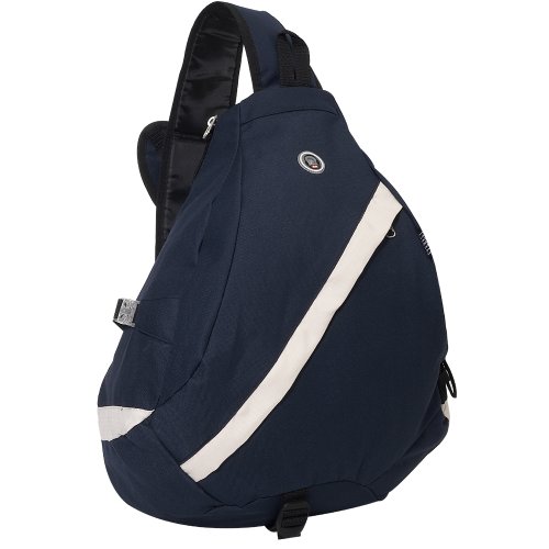 An on-the-go sling bag with a sporty white stripe