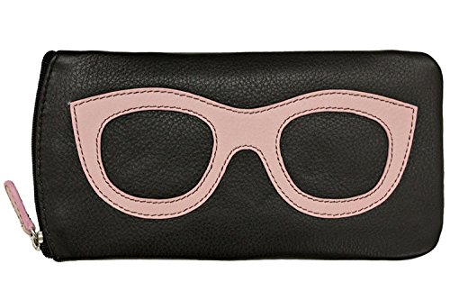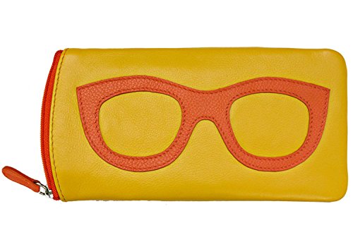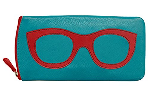 Colorful Leather Eyeglass Case with side zipper and back zip pocket.