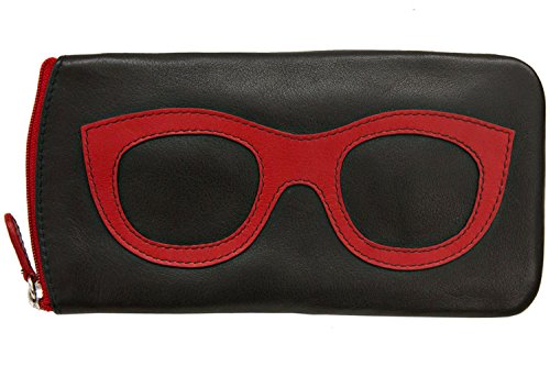 ILI 6462 Leather Eyeglass Case (Red/Black)