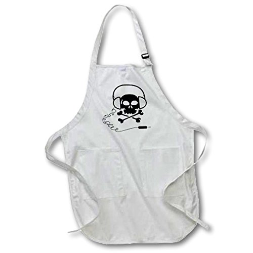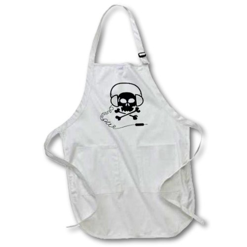 3dRose apr_38174_1 Skull and Bones with Headphones Full Length Apron with Pockets, 22 by 30-Inch, White
