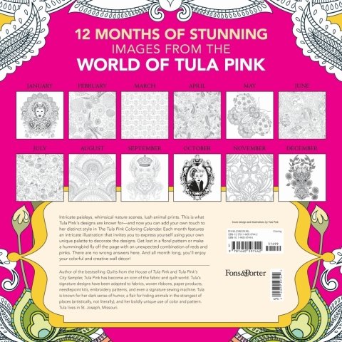 -. Binding : Office Product -. Brand : FW Media -. EAN : 0705911297371 -. Feature : 2017 Calendar featuring beautiful images for every month of the year. / Includes Holidays and Observances. / Keep your appointments and Birthdays organized in one place! / Perfect for office spaces, bedrooms, classrooms and more! / Makes a great gift for friends and family! -. Label : FW Media -. Manufacturer : FW Media -. MPN : 97442 -. PackageQuantity : 1 -. PartNumber : 97442 -. ProductGroup : Office Product -. ProductTypeName : OFFICE_PRODUCTS -. Publisher : FW Media -. Studio : FW Media -. Title : 2017 The Tula Pink Coloring Calendar - 9 x 11 -. UPC : 705911297371