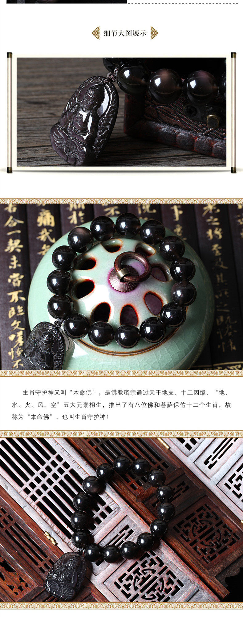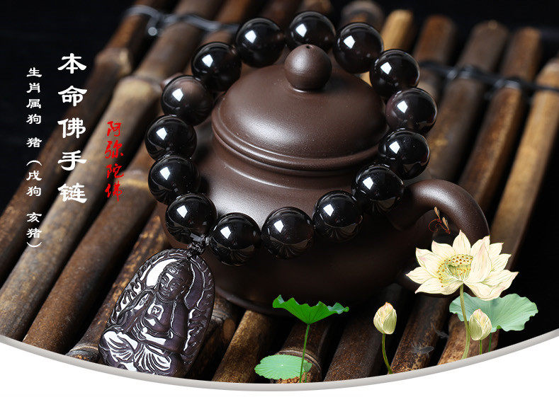 开光冰种黑曜石属狗属猪阿弥陀佛肖猪狗人的本命佛手链