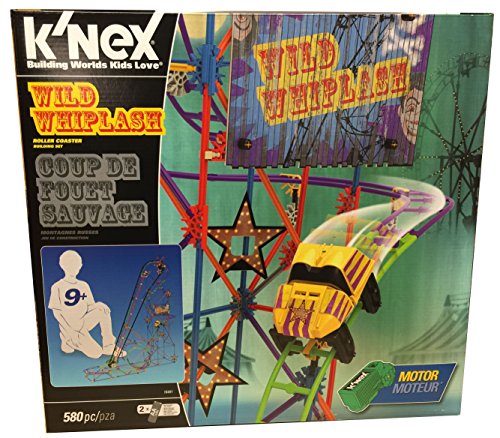 -. Binding : Toy -. Brand : K'Nex -. EAN : 0744476164919 -. Feature : Build a WORKING motorized roller coaster! / Creepy Carnival theme with special graphic panels and stickers for the coaster car / 580 parts, including over 14 feet of track and a motorized chain lift / Includes easy-to-follow, step-by-step building instructions plus downloadable instructions for a 2nd coaster / Over 2 ½ feet tall! -. IsAdultProduct : 0 -. Label : K'NEX -. Manufacturer : K'NEX -. ProductGroup : Toy -. ProductTypeName : TOYS_AND_GAMES -. Publisher : K'NEX -. Studio : K'NEX -. Title : KNEX Wild Whiplash Roller Coaster Building Set -. UPC : 744476164919