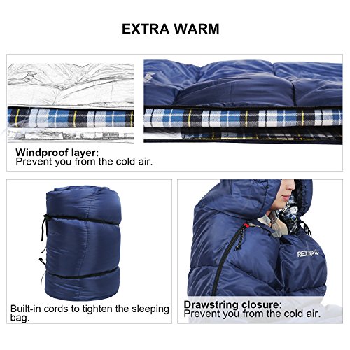 Studio : FREELAND EXCEED INC Publisher : FREELAND EXCEED INC Product Description Highest Quality Warmer Hooded Flannel Lining Sleeping Bag by 95" x 35" - 100% Brand new and high quality. - Size is 95" x 35", fits one adult comfortably or two kids snugly. - Warmer and Comfortable. Good soft breathable cotton flannel liner hollow fiber filling and double-layer construction increases warmth and durability. - Heavy-dirty and waterproof material make it easy to clean up with a damp cloth. - Two sleeping bags can be zipped together with left-hand or right-hand zippers. - Foldable sleeping bag is easy to pack and carry. - 2 different filling weights are for your choice. REDCAMP Sleeping Bag is great for both indoor and outdoor activities. With a carrying bag, it can be taken anywhere you want to go. It is suitable for hiking, climbing, camping, self-driving tour, fishing and other outdoor activities.?So feel free to BUY for your family friends.