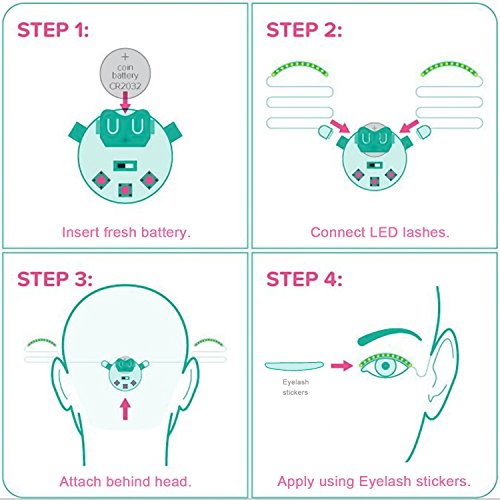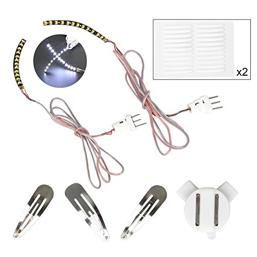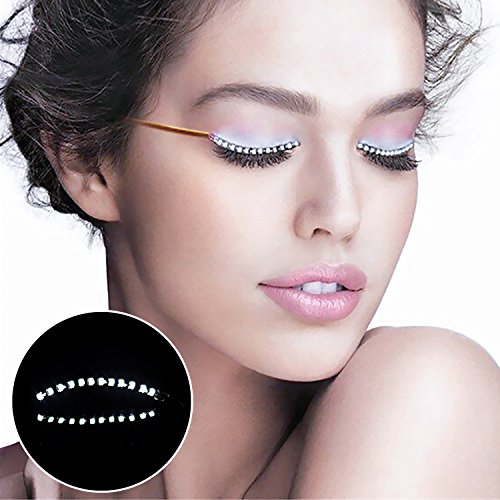 -. Feature : POPULAR & FASHION: 2017 these unisex white Flashing LED Eyelashes are perfect for Party, Bar, Dancing, Halloween and Christmas. You can attract attention via new designed led lashes and lead the new cool fashion trend. / 5 FUNNY FLASHES EFFECTS: Liquid Pour/ Twilight Sparkle/ Hyper Burst/ Knight Riding/ Endless Winks. Different effects can be changed with just one hit the controller. You can choose the effects you like and burst with popularity. / EASY OPERATIONS: Eyelid adhesive strips is Easy to Apply and Remove. Just using adhesive strips on the back of lashes and stick it on your eyelid.and put the clip attached behind head hair or clothes. / SAFE and STABLE: Microcomputer program control,Low color temperature,will not heat up,no harm to eyes. No affection on your eyesights, just take it as part of your eyelashes, shining and dancing as normal. / MULTIPURPOSE APPLICATION: Suitable for Night Club , Concert Stage , Halloween Day, Night rides , night runs,or get this led eyelashes as a gift for beautiful fashionable young people, oh get one for you too to make yourself shinning right now!