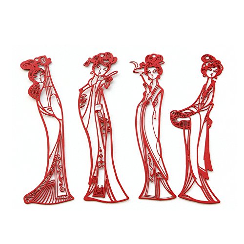 JoyTong Oriental Beauties Metal Bookmark with Tassel,Pack of 4
