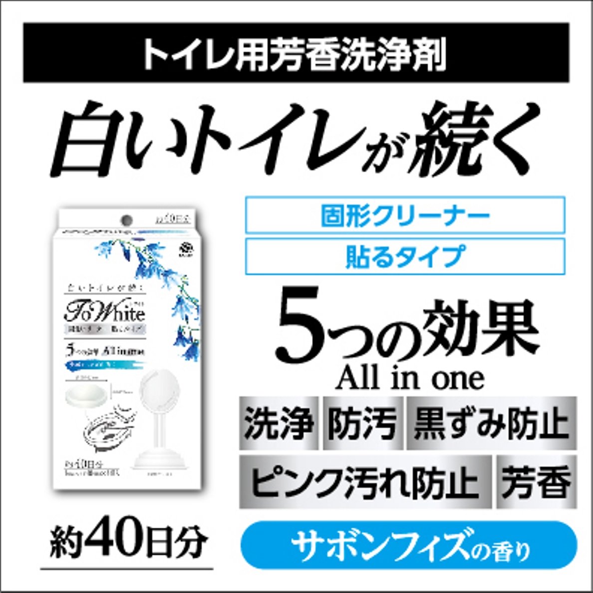 · A type that sticks to the toilet packed with the five effects "washing", "antifouling", "prevention of darkening", "prevention of pink contamination" and "fragrance".