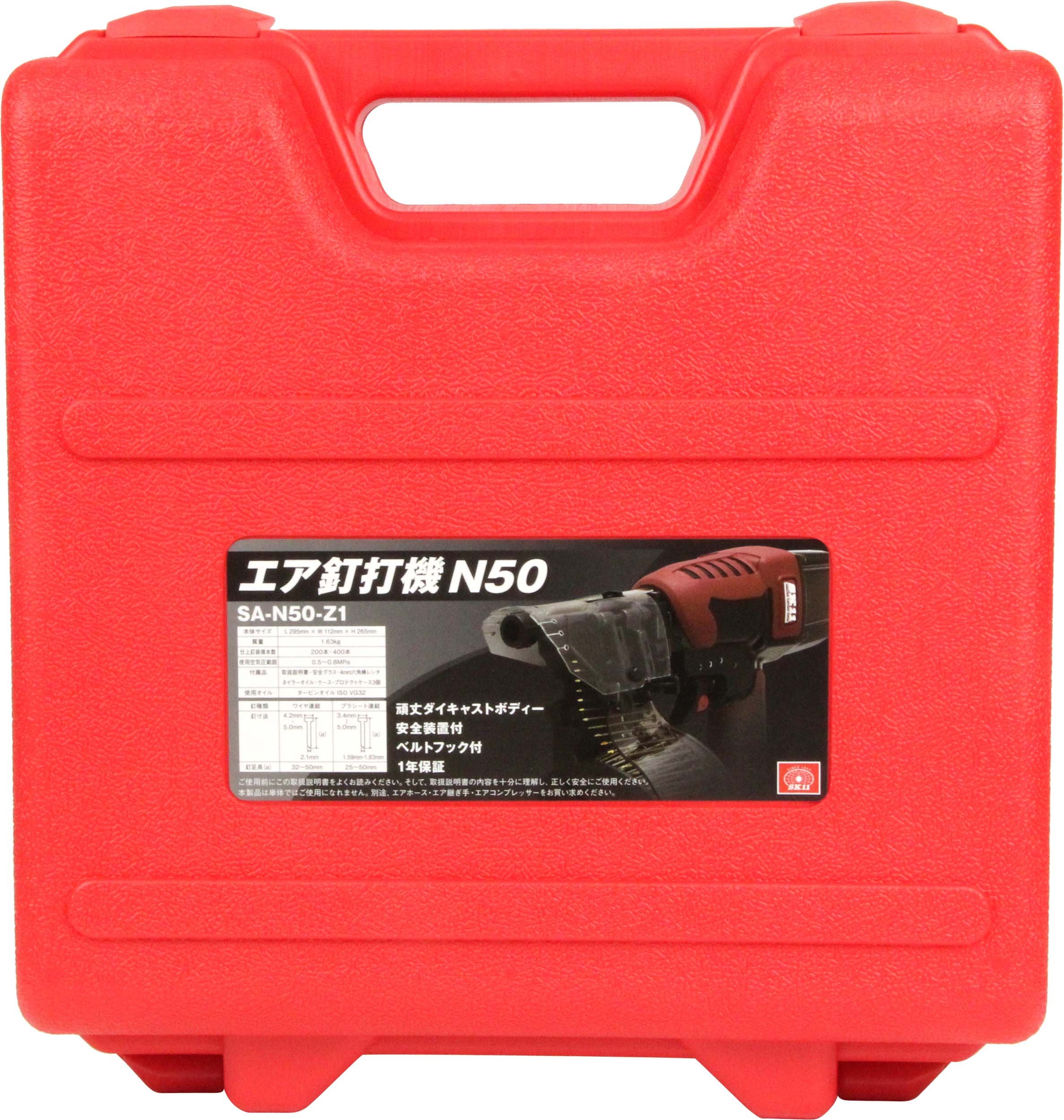 ● [Contents of set] Main body · Safety glass · Nailer oil · Case · Protect case 3 pieces · 4 mm hexagon wrench wrench · Instruction manual.