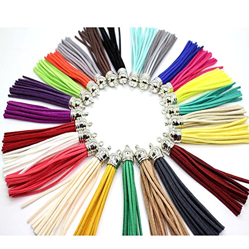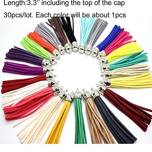 Pamir Tong 30pcs/lot 85MM(3.3'') Multi-Colors Faux Suede Leather Tassel with Silver Caps Cell Phone Straps/DIY Charms Earring/Keychain/bag/necklace Acessory GD30ST04