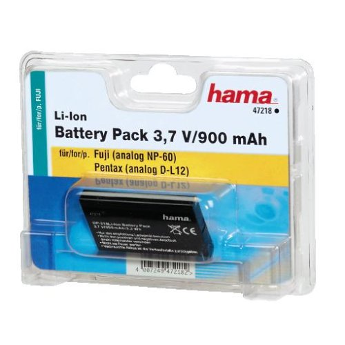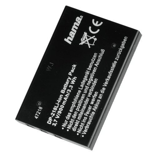Lieferumfang: 1 Hama Li-Ion-Akku "DP 218", Leistung: 3,7 Wh, Kapazitat: 1000 mAh, Spannung: 3,7 V, Farbe: Schwarz
