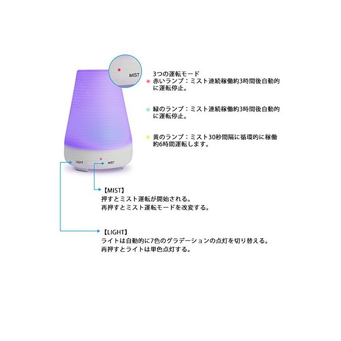 원본상품명: ESEOE 超音波式加?器 アロマディフュ?ザ? 七色ム?ドランプ 空焚き防止 (100ml)