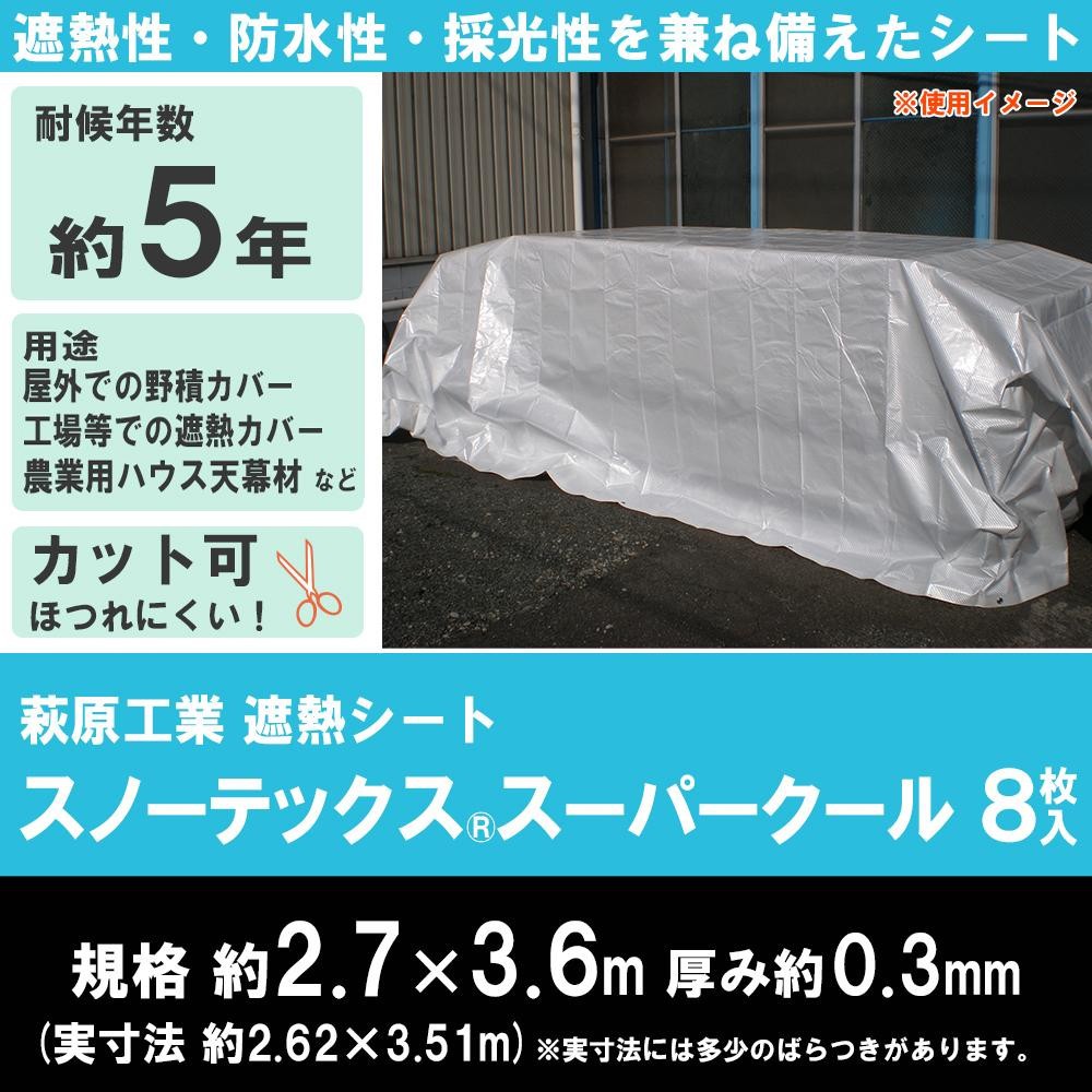 | 仕様 | ■カラー:(表)パールホワイト、(裏)シルバー ■耐候年数:約5年※使用条件により異なる ■畳表示:1枚あたり約6帖 ■継ぎ目なし ■ハトメピッチ:約90cm |
