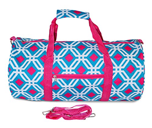 Product Description Don't get lost in a sea of black gym bags! Stand out in style with this fun print! This piece of lightweight luggage is great for gym workout enthusiast and can be used for a quick, close by staycation or for a weekend excursion to your favorite retreat. It's chic and fashionable design makes it a perfect choice for transporting gear for dance teams and cheer squads too! Also makes an ideal personality flaunting gym bag! You can carry your cute duffle by its included durable, detachable shoulder strap or slide it easily over the handle of a rolling suitcase for stress-free and efficient, stylish transport. Fully lined with black linen, keeping it clean is easy! Never lose your boarding pass, ID, or other smaller items with an exterior zipper pocket on the front of this security checkpoint friendly bag. 0