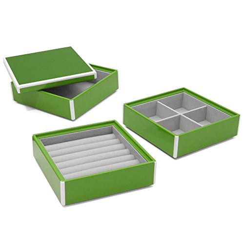 Swing Design Elle Lacquer Set of 3 Stacking Jewelry Boxes, Green