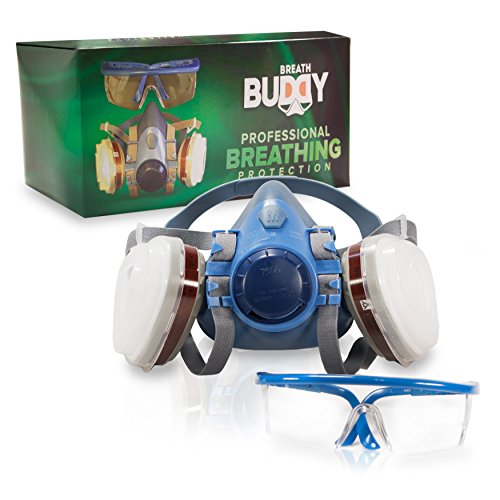 Breath Buddy Respirator Mask (Plus Safety Goggles) Reusable Professional Breathing Protection Against Dust, Pollen, Pesticides, and Organic Vapors - Perfect For Painters and DIY Projects