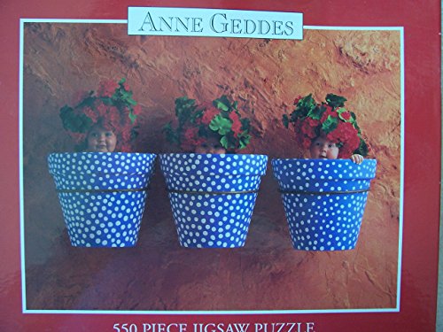 -. Title : Anne Geddes 550 Piece Puzzle 24" X 18" - Three Blue & White Polka Dott Flowerpots