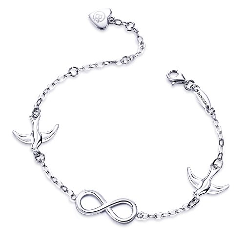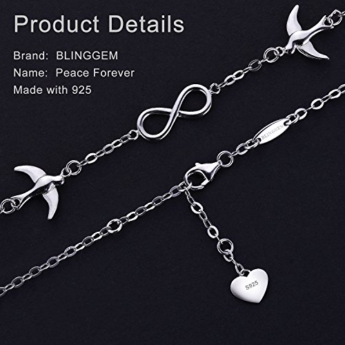 ❂Infinity Peace Dove Bracelet❂ Made of 925 Sterling Silver, 18+2cm/7.9inch long White gold plated silver chain. The exquisite doves is unique one-off design and exquisite polish techniques which made it truly eye-catching, symbol of yearn for the infinity peace and eternal love.