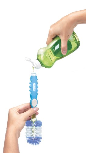 Baby bottle cleaner dispenses soap at the push of a button