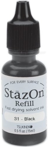 -. Feature : Refreshing stazon inkpads is easy with the stazon inker with built-in applicator tip; inkers can also be used with Tsukineko's sponge daubers, jumbo daubers, ink sweepers, fantastix and stipple brushes to create backgrounds and paper edging effects / StazOn, the industry-leader in multi-surface stamping, can be used on non-porous surfaces; Unlike other inks, StazOn will adhere to most acetate, acrylic, metal, leather, shrink plastic, cellophane, and plastic surfaces / Use StazOn for card making, memory albums, home decor, office decor and more / Available in 25 contemporary colors; also available in 6 opaque colors and 4 metallic colors - a color to fit almost every need / Contains 1/2-ounce