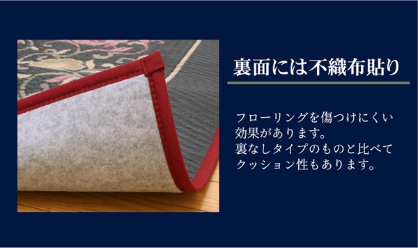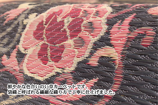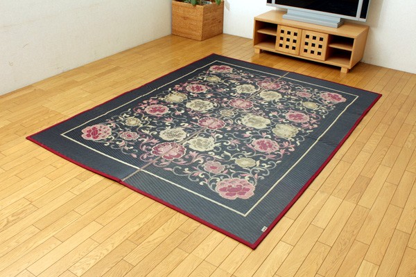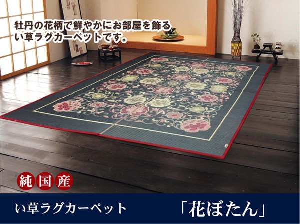 【商品名】純国産/日本製 袋三重織 い草ラグカーペット 『花ぼたん 総色段通』 約176×240cm