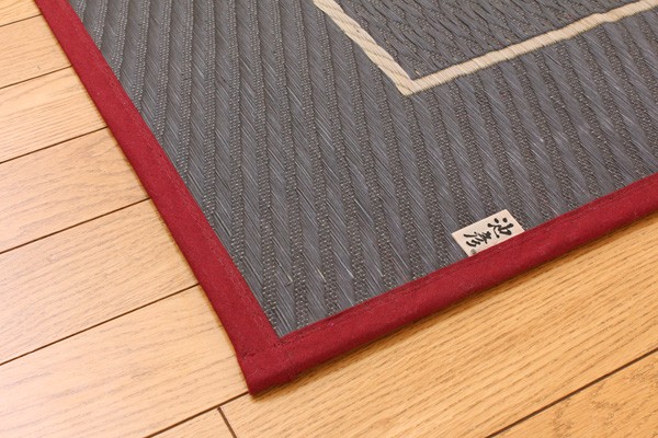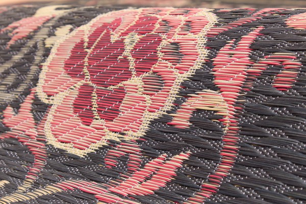 縦糸の本数が多い袋織りという技法で繊細な柄を出しています。折れ曲がりが複雑なので長いイ草を使用しないと切れてしまいます。縦糸が密なので、しっかりとして破れにくいのが特徴です。国産(九州産)のい草を使用しています。一本一本が太く、表皮が厚く繊維がキメ細かいので弾力性があり、耐久性に優れています。い草には空気の自然浄化作用、湿度の調節作用などがあります。また汚れにくく、使用するうちに黄金色に変化し味が出ます。い草に青森ヒバ加工を施しています。(抗菌、防臭効果)