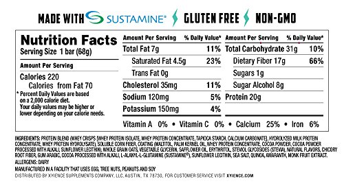 ReleaseDate : 2017-01-27 Studio : Xyience Publisher : Xyience Binding : Grocery Product Description XYIENCE [zi-ence] Protein Bars are great-tasting and packed with high-quality ingredients. XYIENCE Protein Bars provide 20 grams of premium protein, which is essential for muscle building and workout recovery. XYIENCE Protein Bars are Soy Free, Gluten Free, and made from Non-GMO ingredients. The three flavors (Chocolate Crunch, Chocolate Mint, and Chocolate Peanut Butter) XYIENCE Protein Bars have between 220 to 240 calories, containing only 1g of sugar. The XYIENCE Protein Bars are sweetened with Stevia. They also contain premium carbohydrate sources of Ancient Grains; Quinoa and Amaranth. The XYIENCE Protein Bars are high in fiber (15-17g per serving) and make a great complement to the Zero Calorie, Zero Sugar Xyience Energy Drink! As an added bonus, XYIENCE Protein Bars include Sustamine. Sustamine is a natural supplement that works on multiple levels to sustain an athlete’s body for optimal performance. It delivers science-supported hydration and performance benefits. 0
