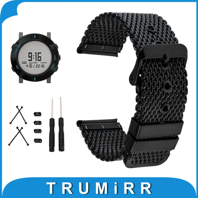 | [해외] 24 미리메터 Milanese 스테인레스 스틸 시계 밴드 + 러그 어댑터 + 도구 suunto 코어 손목 스트랩 손목 벨트 팔찌 블랙 실버 |