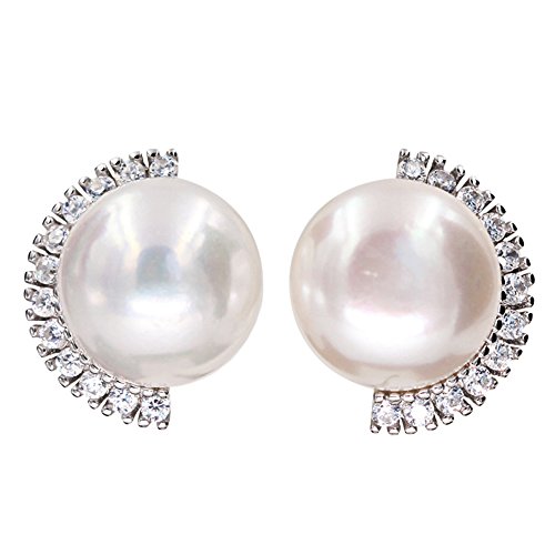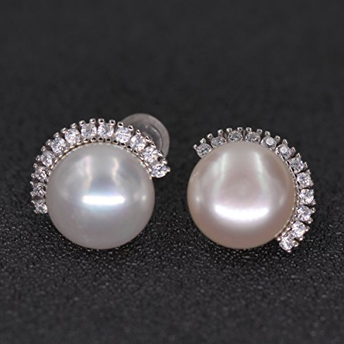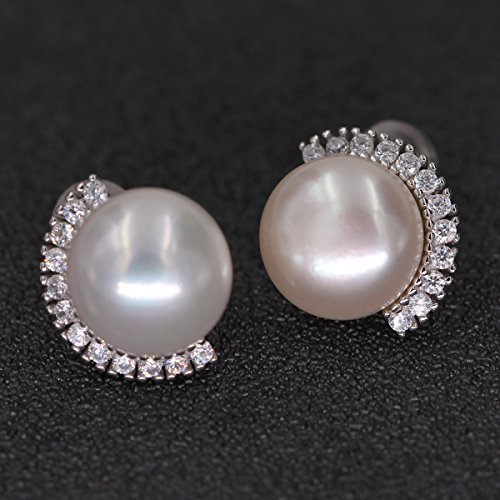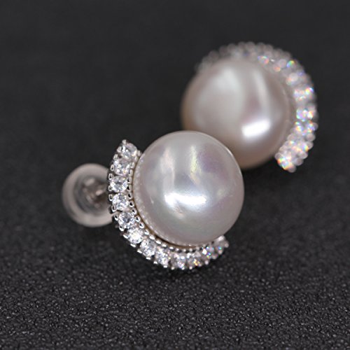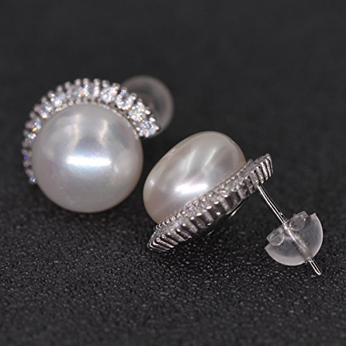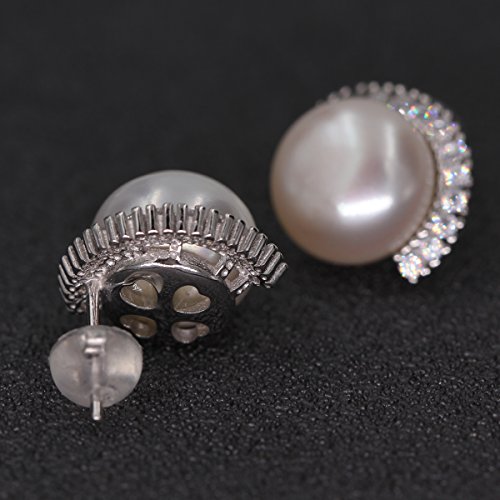 Great quality platinum plating 925 sterling silver earrings, metal stamp S925. Freshwater pearls earrings with cubic zirconia crystal setting, match all your costumes well, make you womenly and charming. Earrings size 20*20mm (0.8" x 0.8"), freshwater pearl 10.0-10.5 mm, button shaped. A nice festival gift to creat more pleasant surprise. Shipped with jewelry gift box, bag and soft cloth.Feature