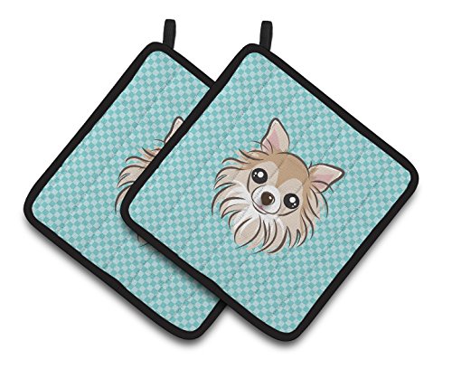 Caroline's Treasures Checkerboard Blue Chihuahua Pair of Pot Holders BB1189PTHD, 7.5HX7.5W, Multicolor