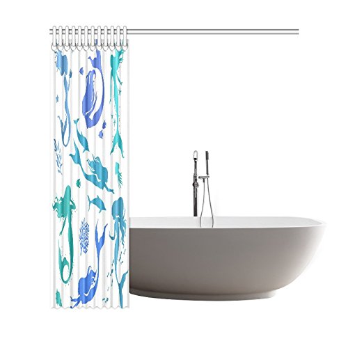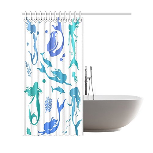 InterestPrint Colorful Mermaid Silhouette Polyester Fabric Shower Curtain Bathroom Sets Home Decor 69 X 72 Inches