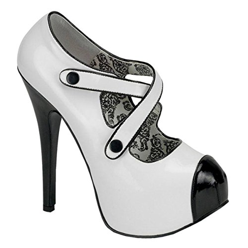 Womens Criss Cross Mary Jane Strap Pumps 5 3/4 Inch Heel Black Pinstripe White