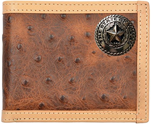 Product Description Brown Ostrich Print Bi-Fold Wallet Customized with a Concho of your choice. The perfect gift. We offer the base wallet for the MSRP, but we do charge a little more for customizing them 0