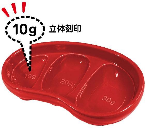 | 仕様 | ドライフード適用量(めやす):60g(10g+20g+30g) 水の適用量(めやす):150ml(25ml+50ml+75ml) 水の満容量:約420ml 適応種:体重5kg程度までの超小型犬、小型犬、猫 電子レンジ・オーブンレンジ使用可 |