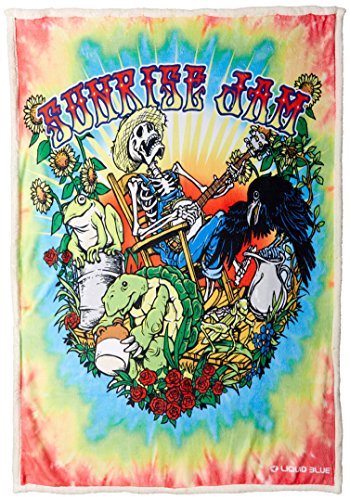 Product Description Liquid Blue presents the awesome of sunrise jam design on a huge fleece throw blanket. This 50 in. X 60 in. Fleece blanket is made of 100 percent polyester coral fleece and backed by a soft heavyweight sherpa material. It is digitally printed and is machine washable. 0