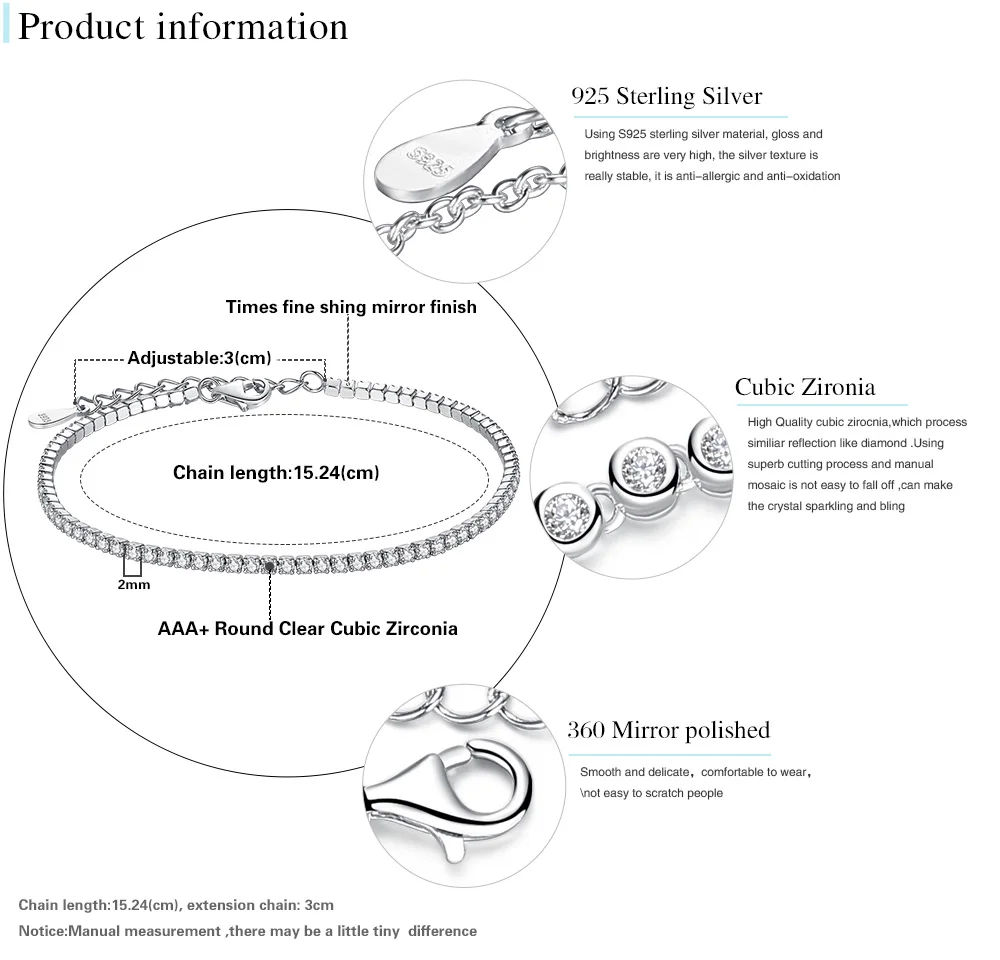 925 Sterling Silver Bracelet & Bangle:Austrian Crystal Charm bracelet for Women Girls