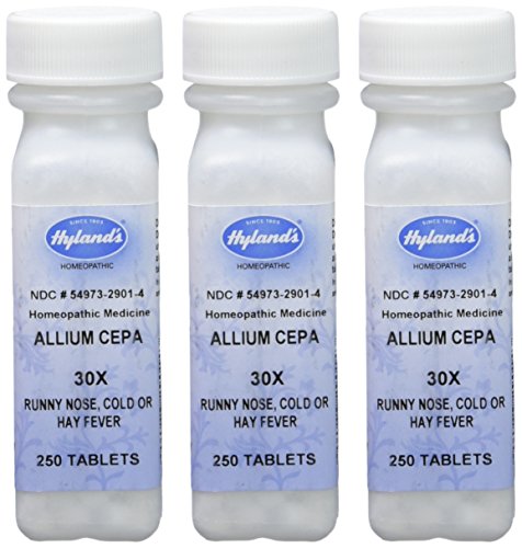 Hyland's Allium Cepa 30X Tablets, Natural Homeopathic Relief of Runny Nose, 250 Count Runny Nose, Cold or Hay Fever NATURAL REMEDIES SINCE 1903? Hyland’s has been producing homeopathic medicines since 1903. Made with natural ingredients and made in the United States. Hyland’s products contain no artificial flavors, dyes or parabens. This product works to stimulate the body’s own natural healing process. FDA COMPLIANT MANUFACURING Always read and follow the label directions when using Hyland's products. The uses for our products are based on traditional homeopathic practice. Hyland’s products follow the manufacturing and quality practices outlined in the Homeopathic Pharmacopoeia of the United States. Hyland’s operates in full compliance with the FDA standards for manufacturing, safety and labeling. Hyland's products have not been reviewed by the Food and Drug Administration. All ingredients are tested upon receipt to ensure potency and safety. Hyland’s Facilities use the most up-to-date equipment and environment to guarantee purity and quality. SAFE AND RELIABLE Homeopathy is a safe effective system of medicine with fundamental principles for selection, application and manufacture. Homeopathy’s potency preparations (6X, 30X, 30C) make dosing safe and stimulating to the body’s own healing properties. Hyland’s quick-dissolving sublingual tablets are safe, effective and completely free of Aspirin, Acetaminophen or Ibuprofen. Homeopathic preparations dilute and invigorate the source, making doses non-toxic and safe to take alongside other medications without contraindications or known side effects. 0 |