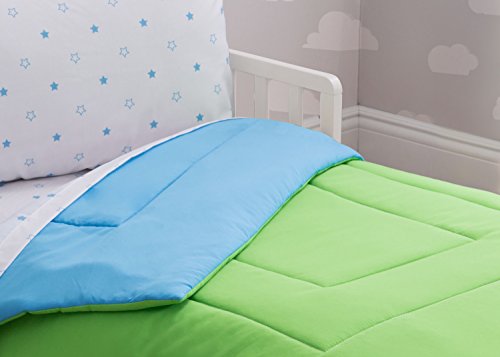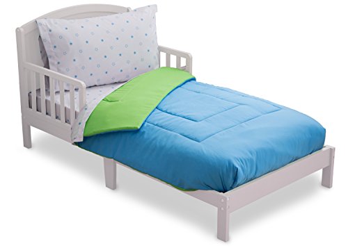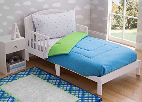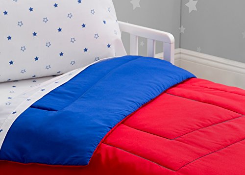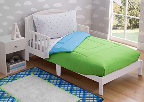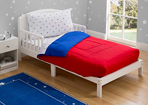 -. Title : Delta Children Reversible Boys Toddler 4 Piece Bedding Set (Fitted Sheet, Flat Fitted Top Sheet, Fitted Comforter, Pillowcase), Boys’