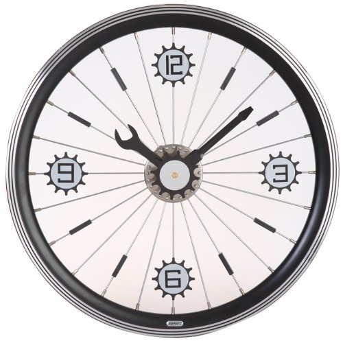 -. Binding : Kitchen -. Brand : Maple's Clock -. Color : Black -. Department : Accent -. EAN : 0818877010394 -. Feature : Body is an aluminum bicycle wheel with the rim painted matte black / Wrench hour hand and screw driver minute hand / Center sprocket moves every second -. Label : Maple's Clock -. Manufacturer : Maple's Clock -. Model : LFT-16-BK -. MPN : LFT-16-BK -. NumberOfItems : 1 -. PackageQuantity : 1 -. PartNumber : LFT-16-BK -. ProductGroup : Home -. ProductTypeName : HOME -. Publisher : Maple's Clock -. Size : 16"L x 16"W x 1.75"D -. Studio : Maple's Clock -. Title : Maple's 16-Inch Aluminum Bicycle Wheel Wall Clock, Black -. UPC : 890858001164 -. Warranty : Limited 1 year parts warranty.