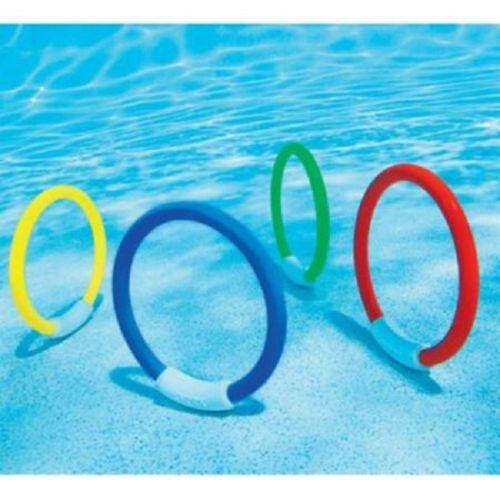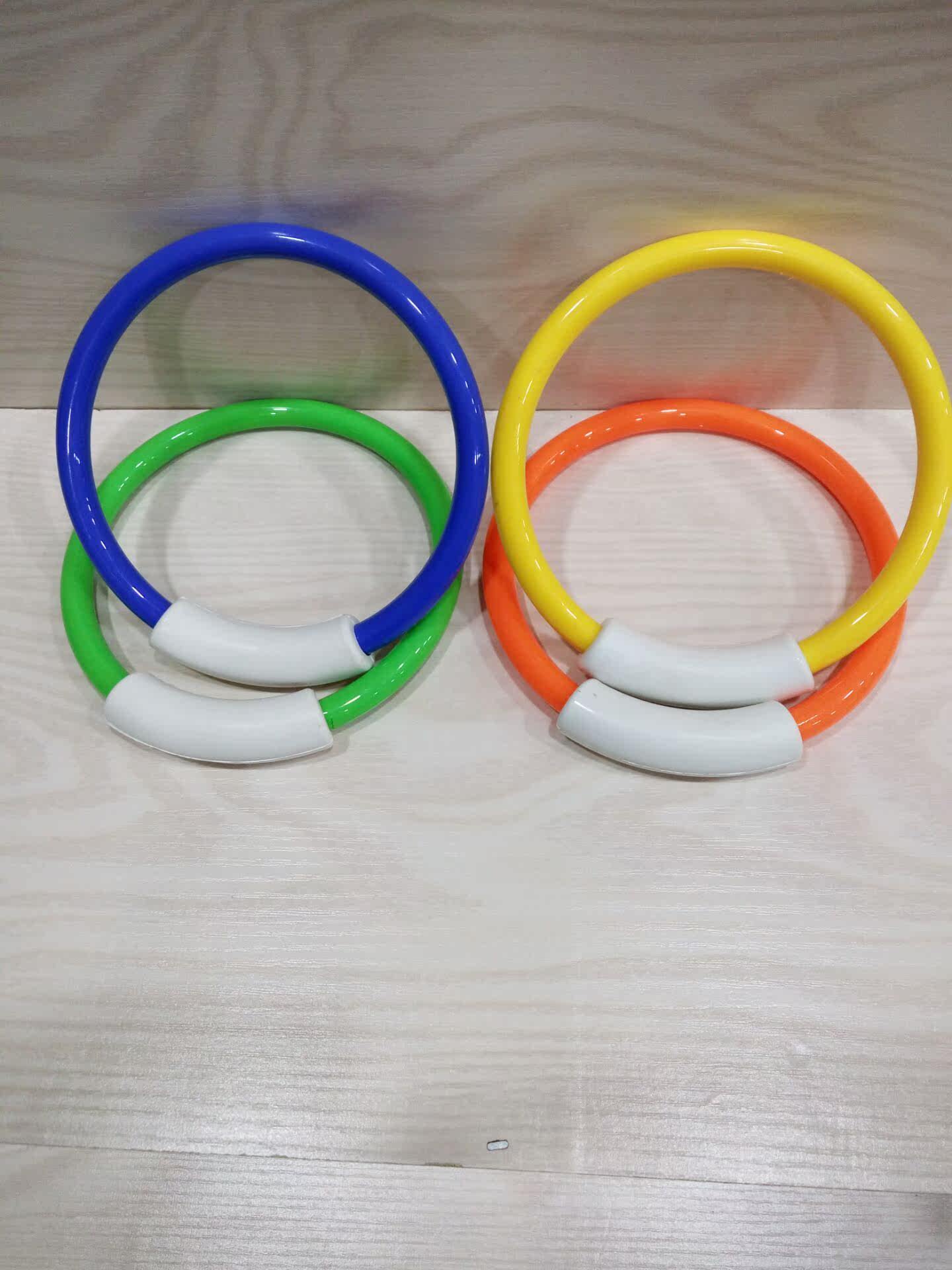 潜水环在水中会慢慢沉下,沉到底时立于游泳池底部,可以在潜水环未沉入水底前,去追逐抓住潜水环;也可以扔单个潜水环,看是否可以抓住潜水环,还有更多的玩法需要买家去开发