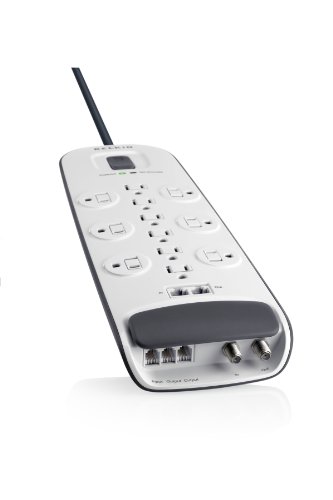 Belkin 12-Outlet Advanced Power Strip Surge Protector with 8-Foot Power Cord and Ethernet / Cable / Satellite / Telephone / Coaxial Protection, 4000 Joules (BV112234-08)