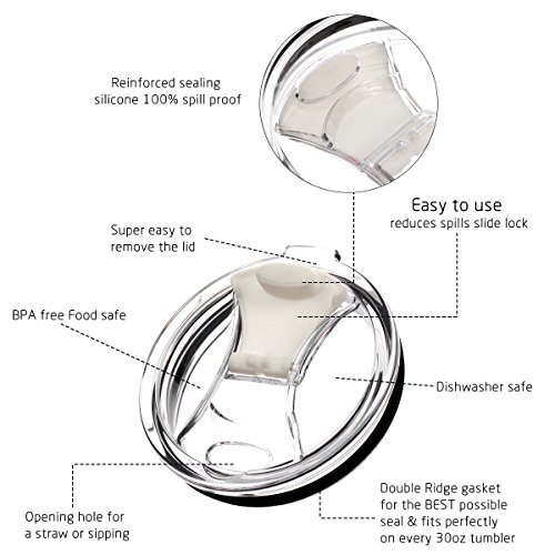2017 NEW DESIGN 100% SPILL PROOF PERFECT MATCH: that its flip lid does not touch your nose or flip back.Perfect match RTIC tumbler, YETI Rambler Tumbler OZARK Trail tumbler and other 30 oz vacuum insulated stainless steel cups ,Keep Your Drinks cooler or warmer For Longer