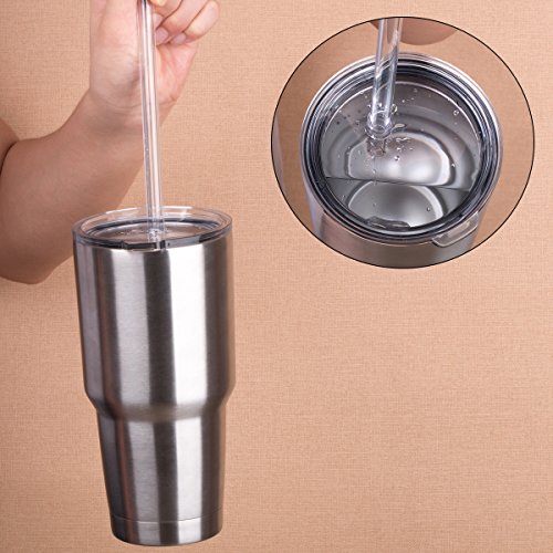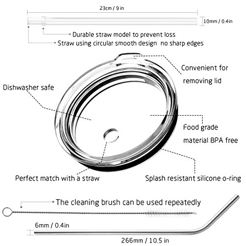 NEW FASHION DESIGN:lid with straw will allow erection of the tumbler,which will free your hands and prevent the drink from spilling or splashing onto you, Even if you do not use handles you can safely drink safe driving. Design a model of durable straw to prevent the loss of your straw during outdoor sports and travel.