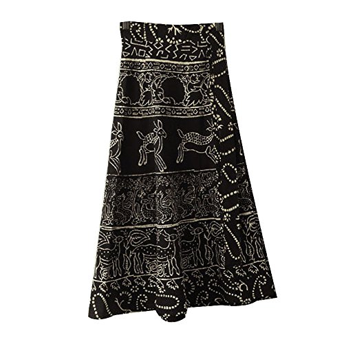 -. Title : スカート ひざ丈 巻きスカート エスニック バンビちゃん ラップスカート インド綿 ブラック フリーサイズ