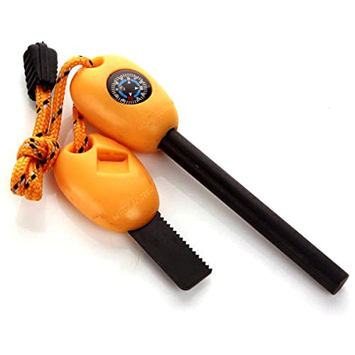 Barbecue anytime anywhere with the firestarter ignore the bad weather. Compass whistle for survival.