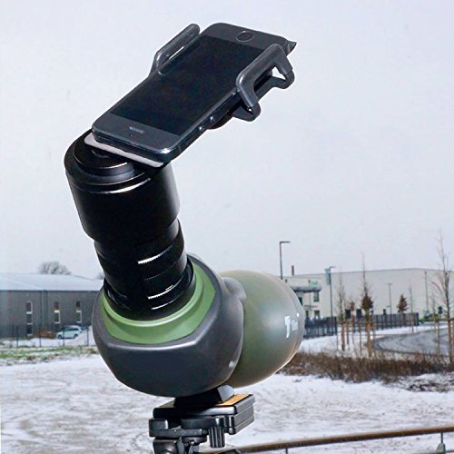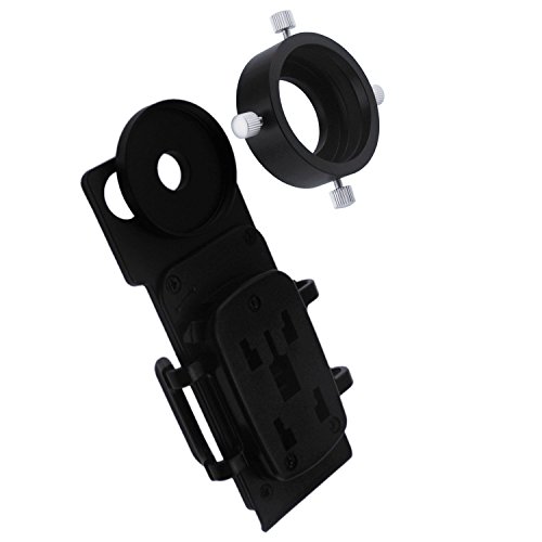 Studio : Astromania Publisher : Astromania Binding : Electronics Product Description Astromania universal Smartphone adapter with direct T2 adaptations ant T2 Photo Adapter for imaging through telescopes and spotting scopes. With this adapter, you can attach your smartphone directly to your instrument. Here, it can take high resolution photos of the objects seen through the optics. In fact, your optical system becomes a tele lens for your smartphone. Easy operation: Depending on your smartphone, the middle and the sideward lens bore can be used. Screw the T2 adapter to the needed bore and you can attach your smartphone: - With the small lever at the back side, the clamp jaws are released. - Lay the smartphone into the holder. Its lens should be in the middle of the T2 bore. - Put the jaws in position and lock them with the lever. Now your smartphone is ready. Details: Telescope / Spotting scope side connection: Female T2 thread(M42x0.75) - and 44- 52mm eyepiece Diameter with locking ring / At least 2cm cylindrical (non-conical) area necessary. Suitable for: Smartphones up to 8 cm width. The smartphone replaces your eye - you need an eyepice for imaging. For the most spotting scopes, an adapter for the T2 thread is available. Find more information in the accessories section. Binoculars have their eyepieces fixed installed - here we offer a special adaptation. Scope of delivery: Smartphone holder with T2 Thread female), eyepiece Adapter with T2 thread (male) and 44 - 52mm Connection for eyepieces. 0