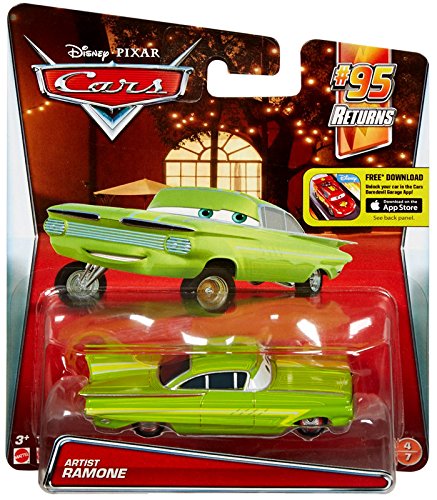 -. Binding : Toy -. Brand : Mattel -. Color : Green -. EAN : 0887961213829 -. Feature : Enchanting die-cast assortment gives kids the chance to reconnect with their favorite Disney/Pixar Cars characters / Vehicles are 1:55 scale die-cast / From grills to wheels, these little vehicles are authentically styled for realistic fun / Collect them all and have a blast recreating fun racing scenes from all of the films! / A must have for any Disney/Pixar Cars collection -. IsAdultProduct : 0 -. Label : Mattel -. Manufacturer : Mattel -. Model : DHJ52 -. MPN : DHJ52 -. PackageQuantity : 1 -. PartNumber : DHJ52 -. ProductGroup : Toy -. ProductTypeName : TOYS_AND_GAMES -. Publisher : Mattel -. Studio : Mattel -. Title : Disney/Pixar Cars Artist Ramone Vehicle -. UPC : 887961213829 -. Warranty : 1 year warranty against manufacturer defects